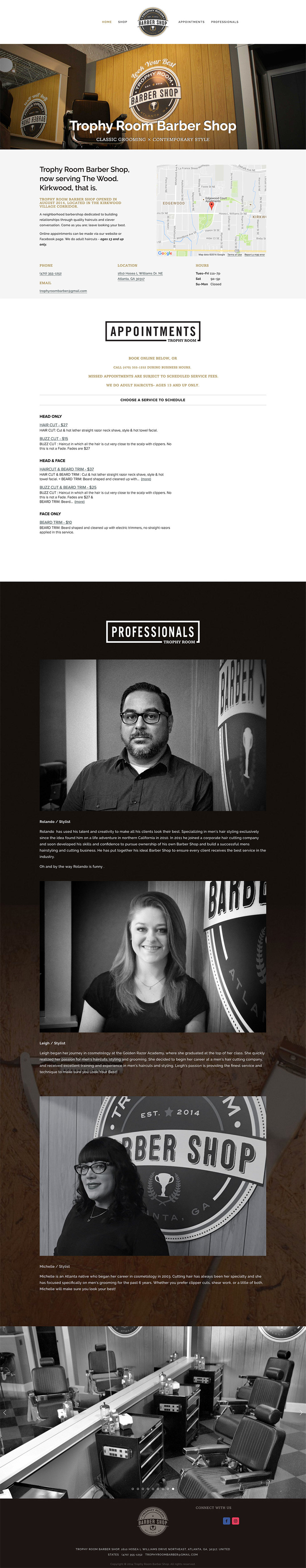 Trophy Room is a neighborhood barbershop where the hair flies and the conversation flows. I built Trophy Room's website, complete with an online booking system that manages the schedule within the shop. Includes logo design, some copywriting, and photography.